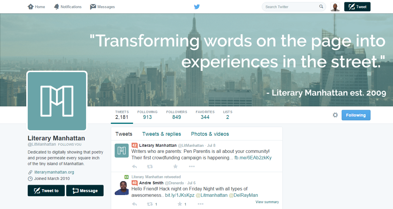 - Our proposal is best described as "Literature at the Heart of Manhattan's History"